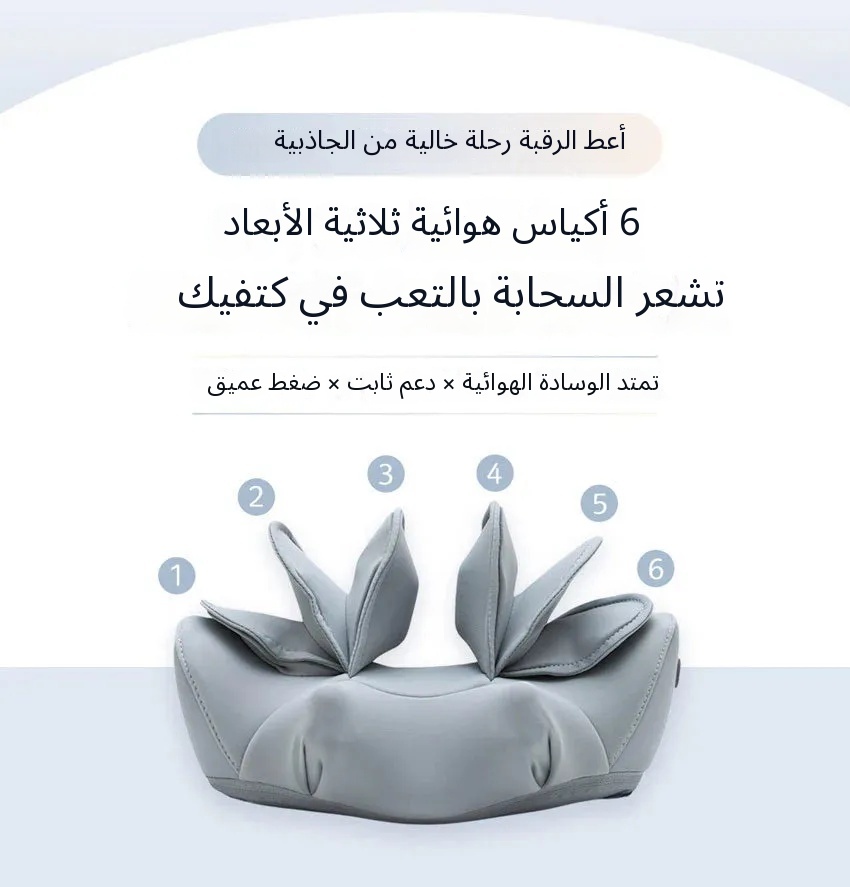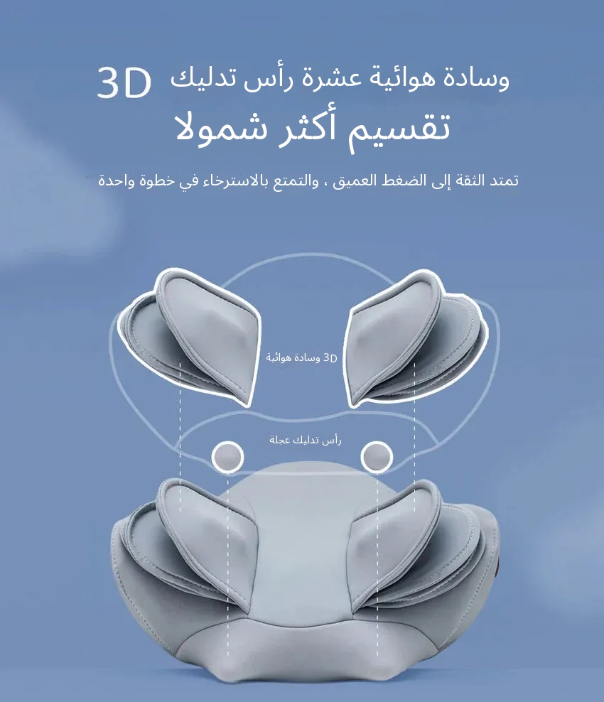 ❶ وسادة هوائية ثلاثية الأبعاد مكونة من 6 قطع، تمتد يميناً ويساراً لتخفيف توتر الرقبة