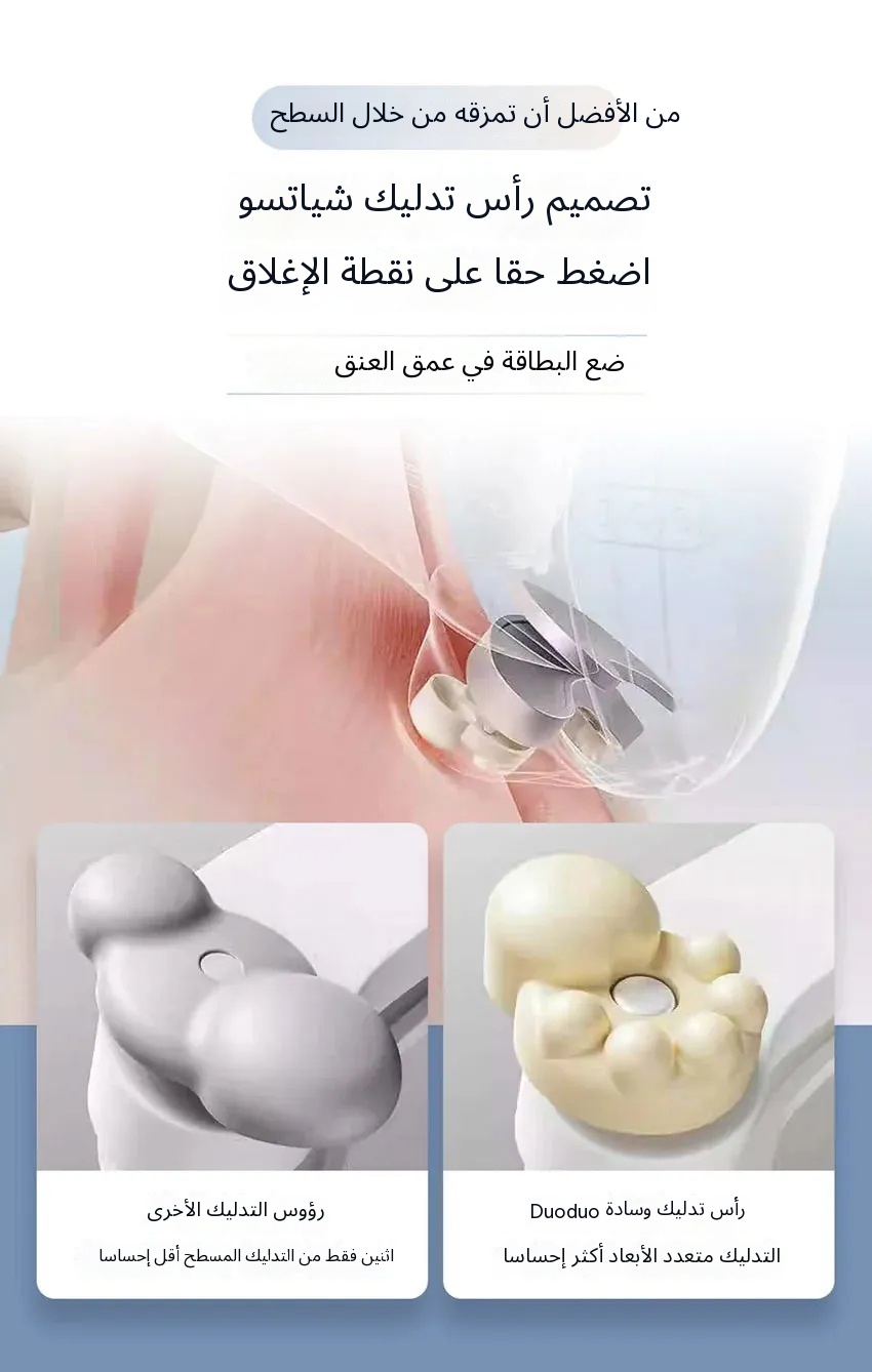 ❻ رأس تدليك بعرض 14 سم، يدلك من الرقبة إلى العضلة شبه المنحرفة