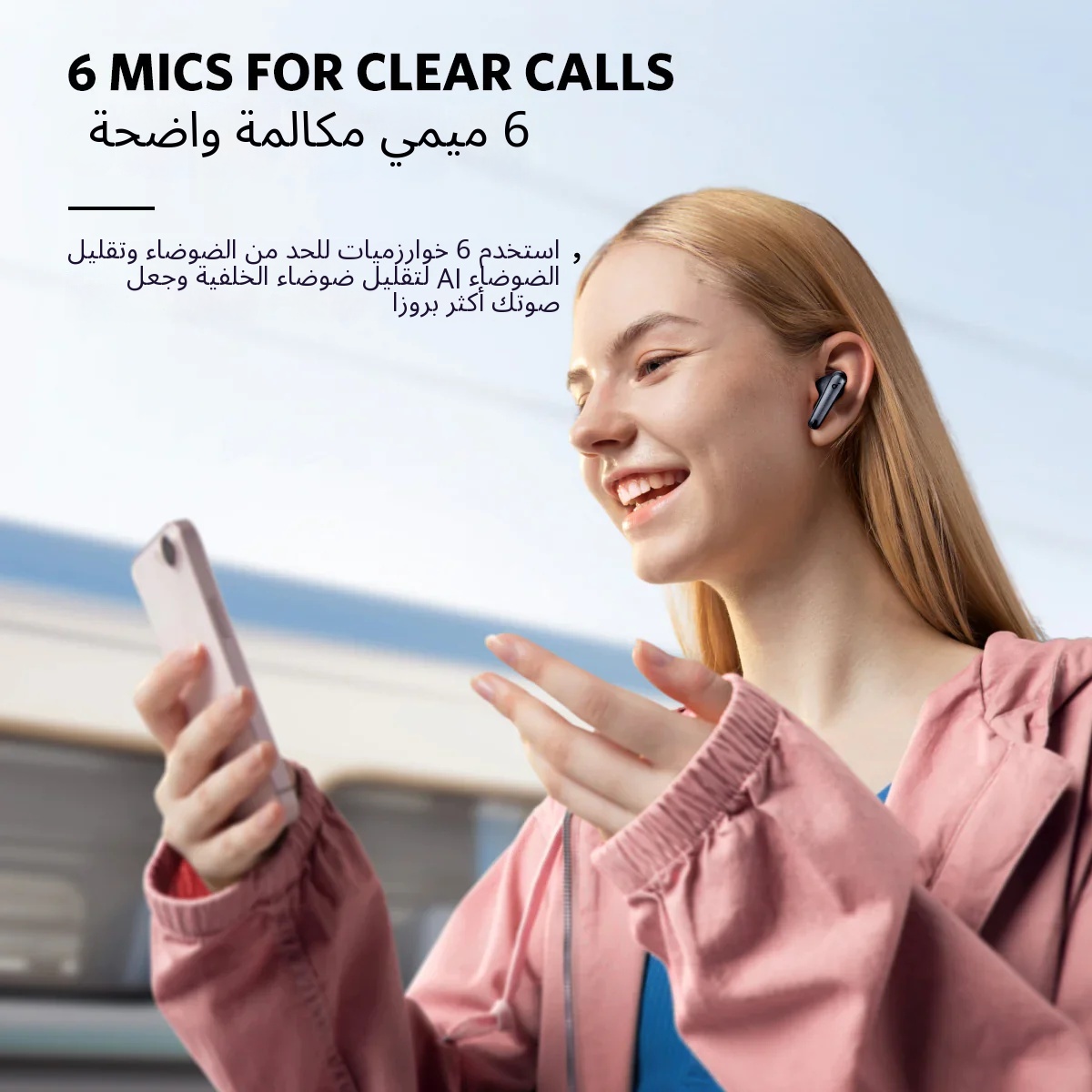 6 ميكروفونات تكوين شعاعي وخوارزميات الذكاء الاصطناعي تقلل من ضوضاء الخلفية، مما يجعل صوتك يبرز أكثر ويجعل المكالمات أوضح.