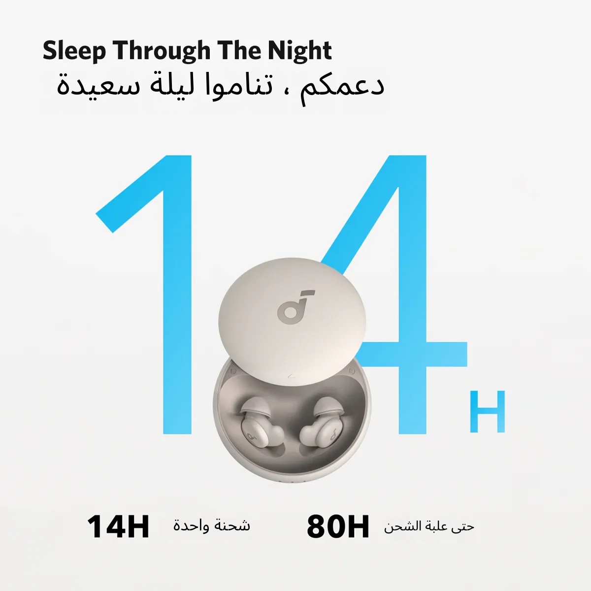 المحتويات: Soundcore Sleep A20، صندوق الشحن، أطراف الأذن (7 أزواج)، أجنحة الأذن (3 أزواج)، كابل شحن USB-C إلى USB-A، دليل التعليمات