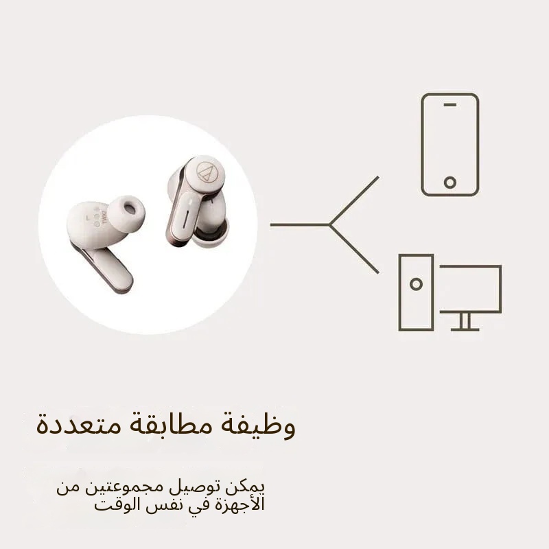 تتيح لك سماعات ATH-TWX7 اللاسلكية الحقيقية مع إلغاء الضوضاء إنشاء مساحة صوتية خاصة بك في أي وقت وفي أي مكان، مع دعم ترميز LDAC لضمان صوت لاسلكي عالي الجودة وعالي الدقة. تتميز هذه السماعات المدمجة بتصميم أنيق وسهل الارتداء، مناسب لمختلف أشكال الأذن، مما يوفر راحة وثباتًا مثاليين للاستخدامات التجارية أو الترفيهية.