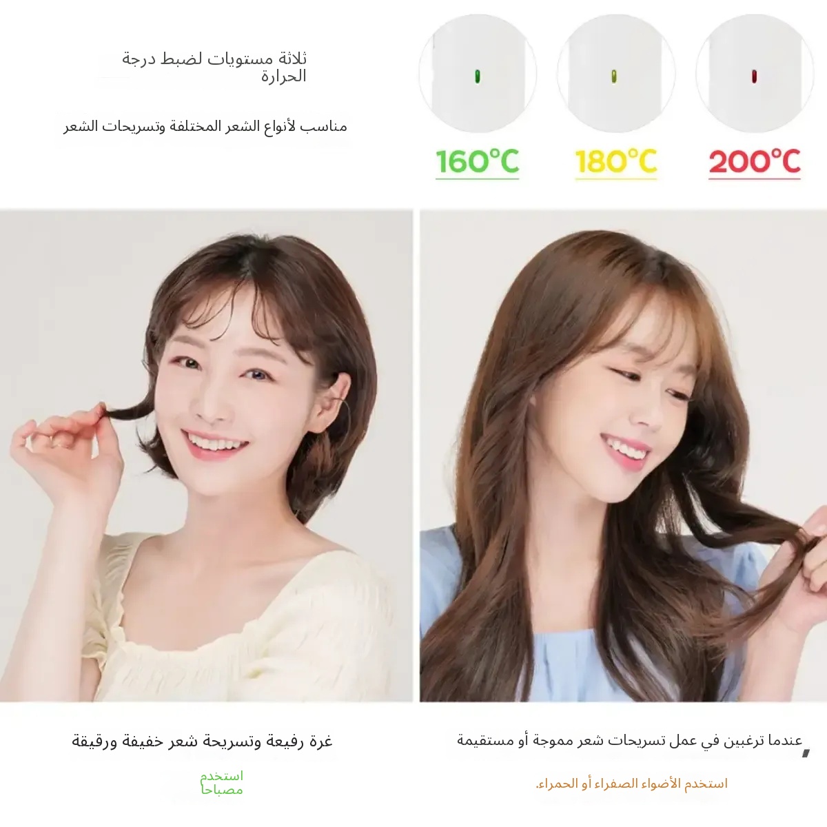 يقدم ثلاث خيارات لدرجة الحرارة: 160°م، 180°م، و200°م، مناسب للشعر الناعم والخشن على حد سواء.