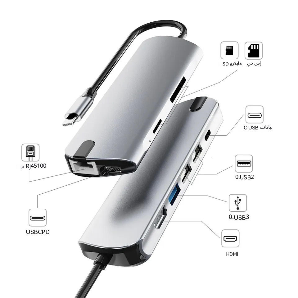 DIGIBAL 9 في 1 HDMI PD Type C موسع متعدد الوظائف