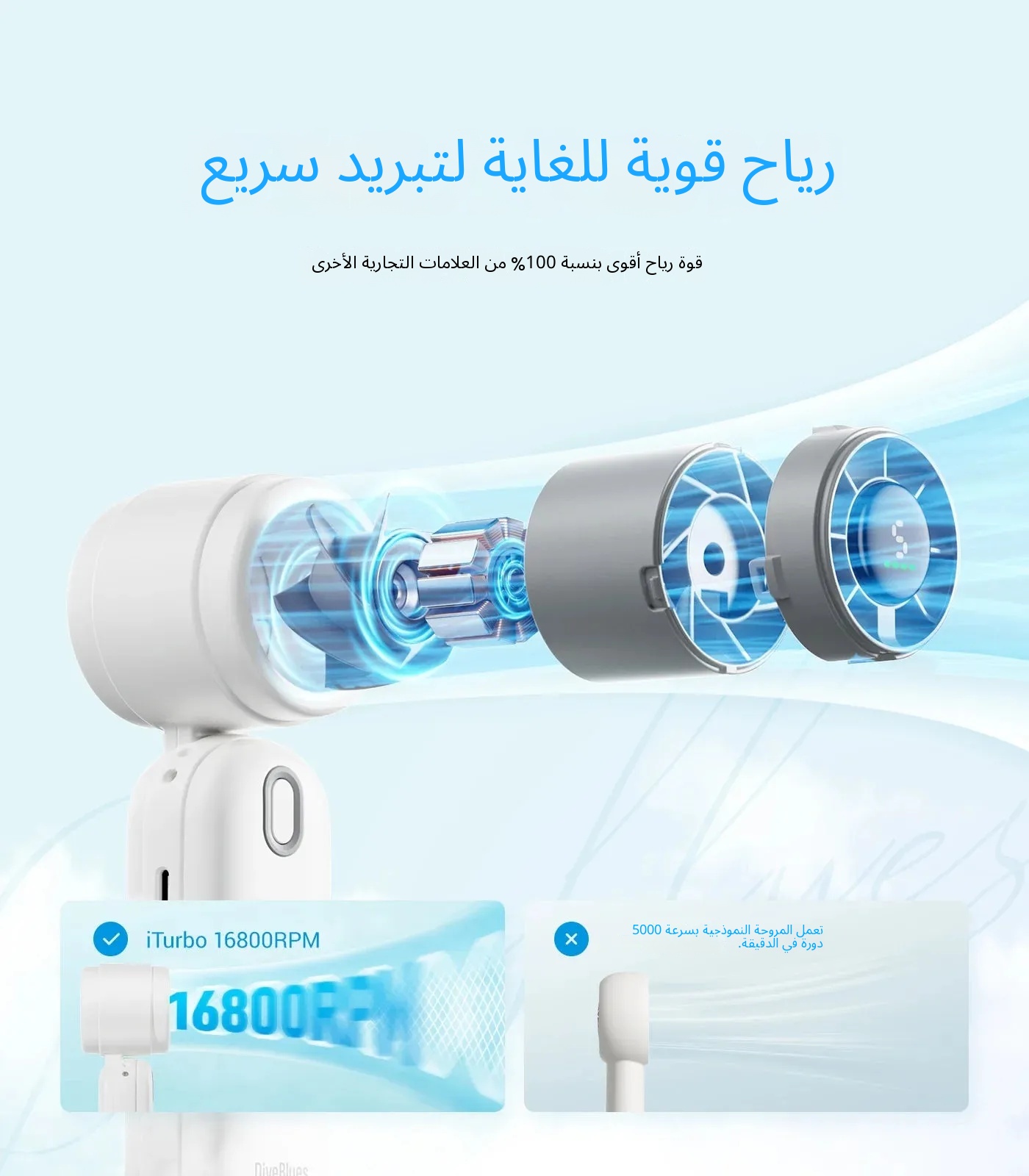 مروحة Diveblues iTurbo المحمولة القابلة للطي (ضمان سنة واحدة للمنتجات الرسمية) – 4 ألوان