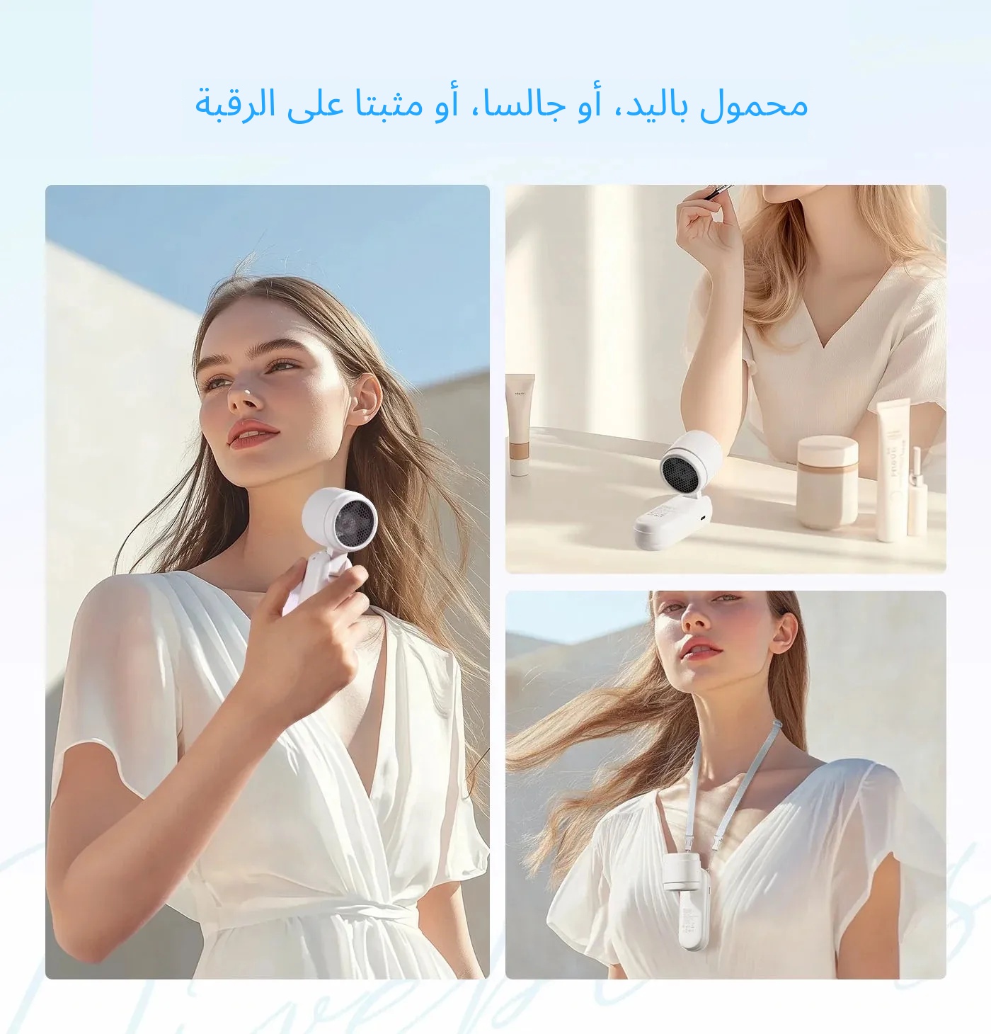 مروحة يدوية قابلة للطي عالية السرعة تجمع بين وظائف الوقوف والاستخدام اليدوي والتعليق حول الرقبة.