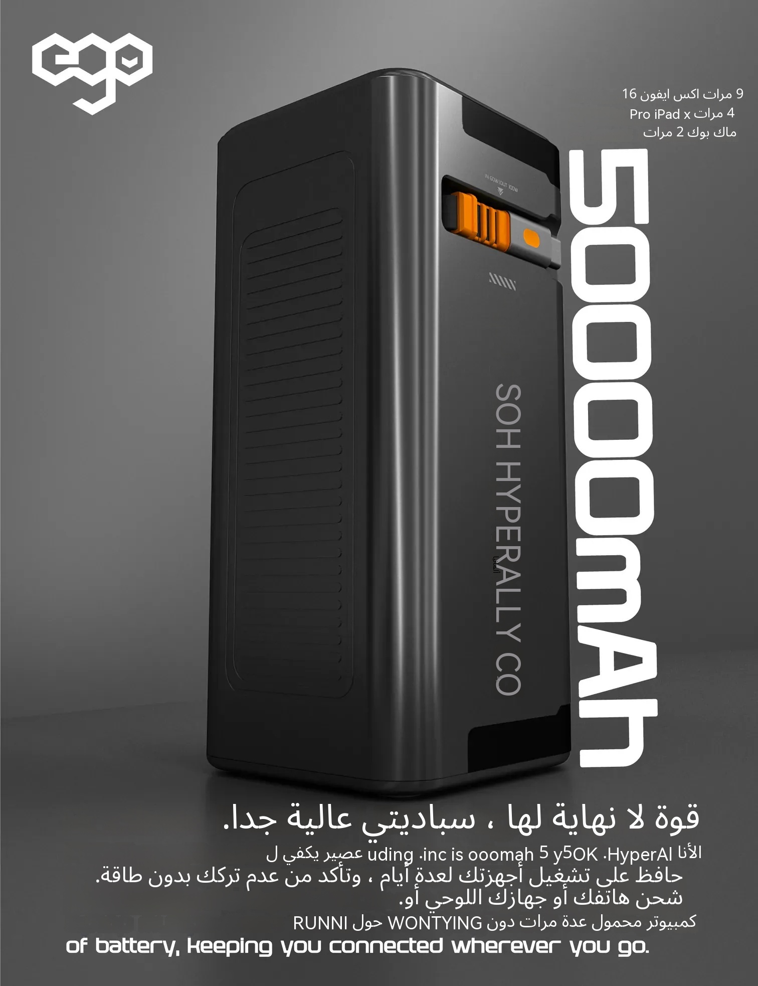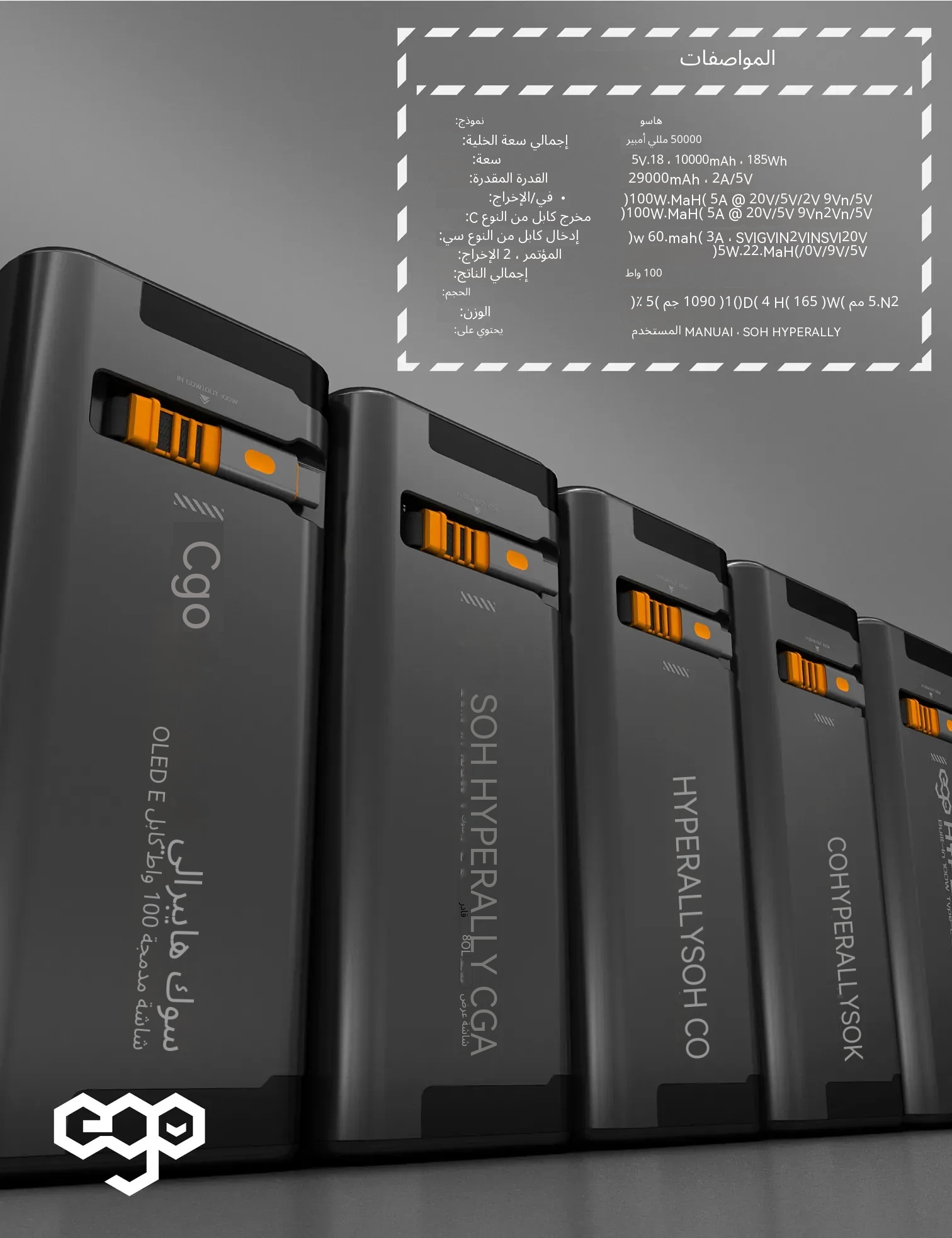 بطارية خارجية EGO HyperAlly 50K سعة 50000mAh بقوة 100 واط