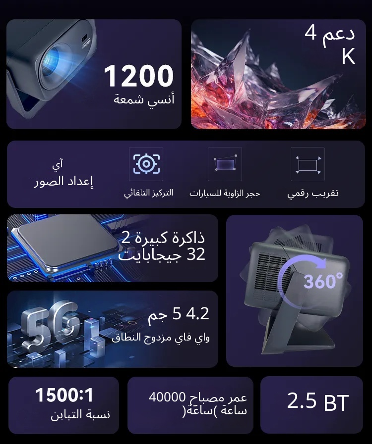 ✅ سطوع 1200 ANSI، لعرض أوضح وأكثر إشراقاً في الغرف المظلمة.