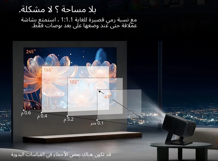 حجم شاشة الإسقاط الموصى بها (بوصة): 34-260