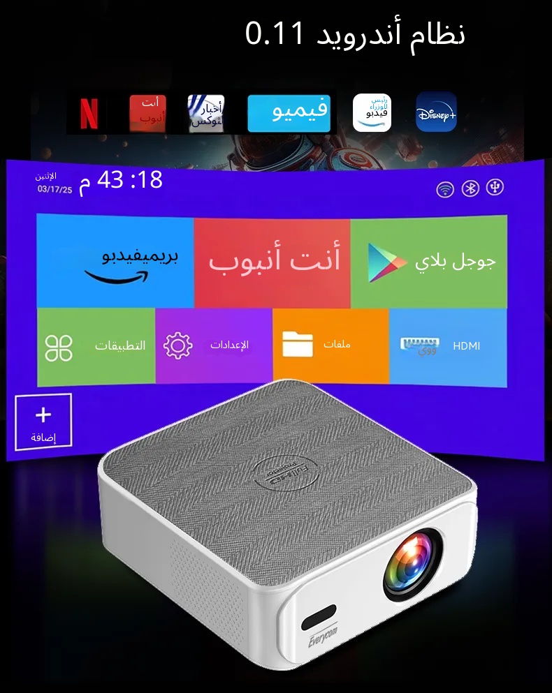 EVERYCOM Spectra 1080P 1200ANSI HD Projector ترخيص رسمي من NETFLIX