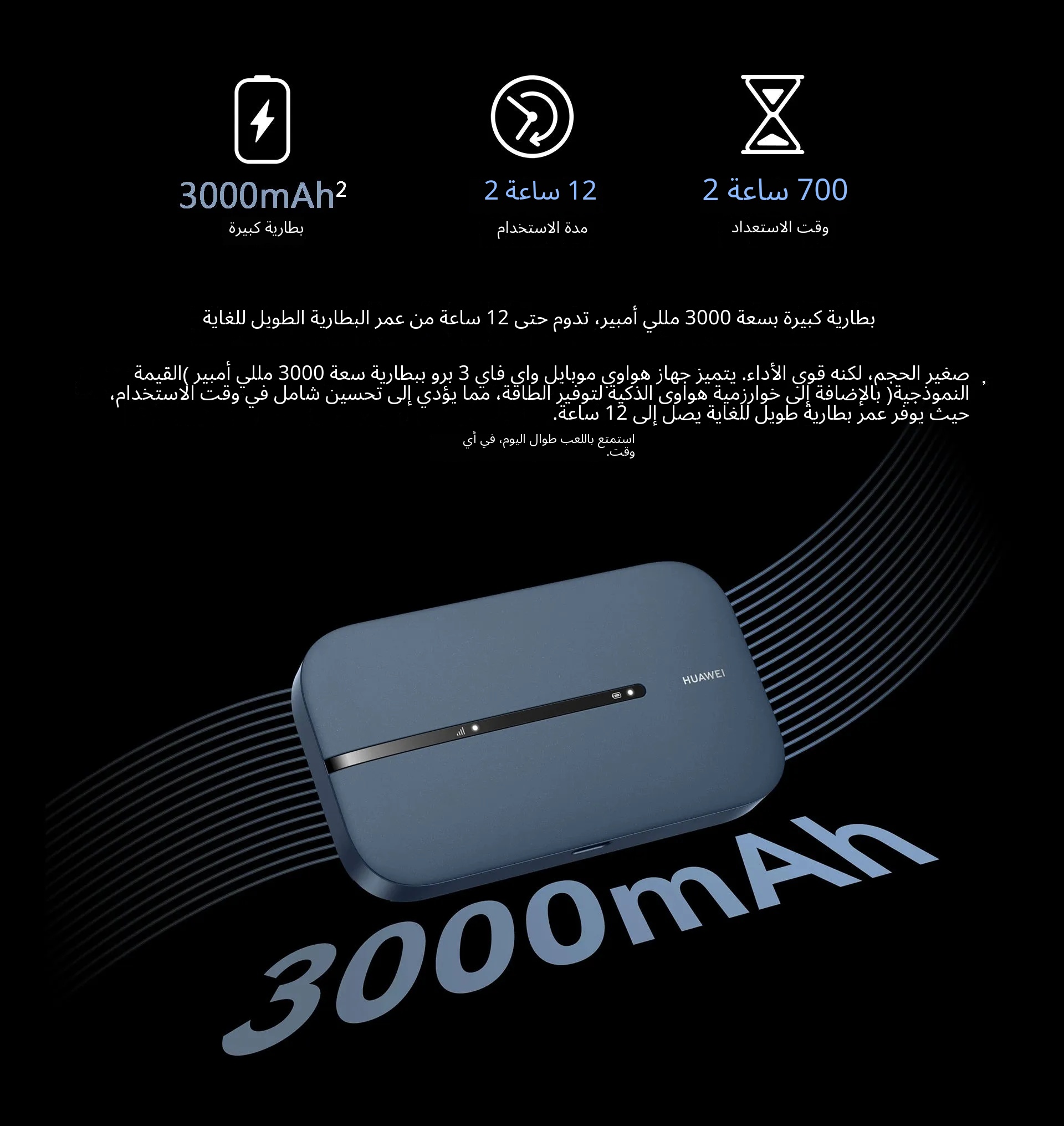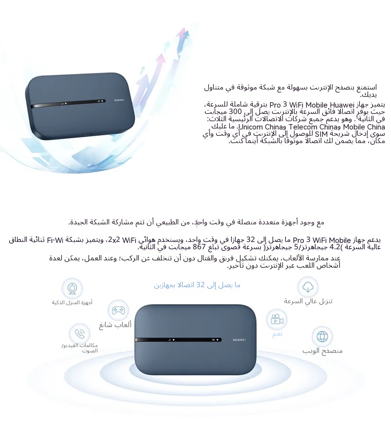 - دعم كامل لشبكة 4G | 300 ميجابت في الثانية | عمر بطارية 12 ساعة