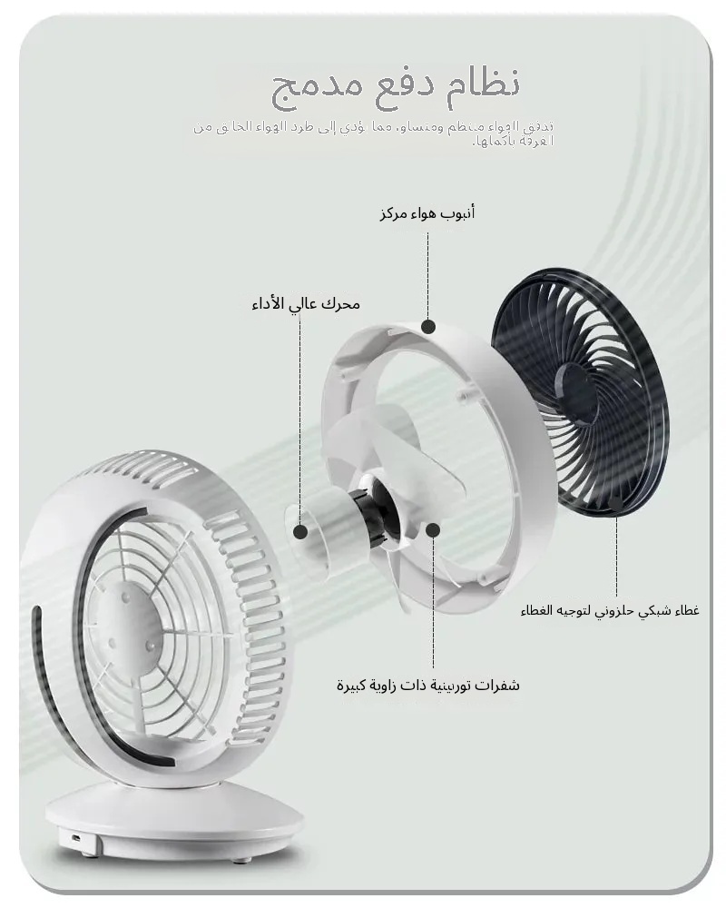 ‘- يحسّن تداول الهواء – ضبط يدوي للزاوية بمقدار 90° – ثلاث سرعات للرياح – استخدام مزدوج للمكتب/الحائط – تشغيل هادئ، لا يزعج النوم – غطاء أمامي قابل للإزالة، سهل التنظيف – شحن USB Type-C