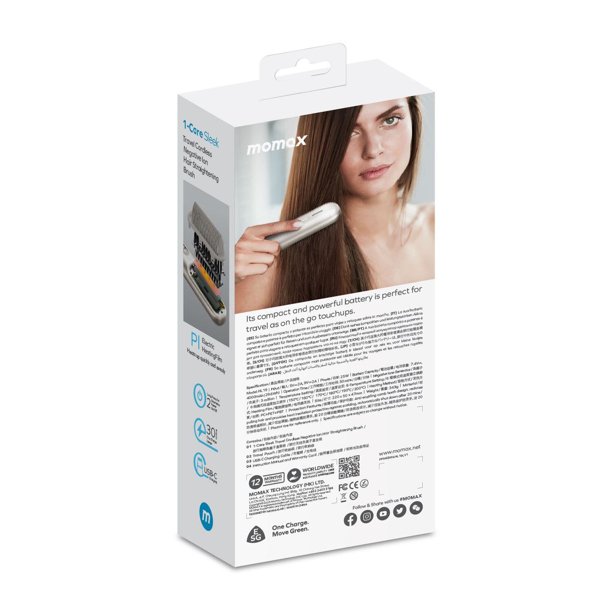 نقدم لك مشط Momax 1-Care Sleek اللاسلكي لتصفيف الشعر – تحفة الابتكار من سلسلة TRVL. إنه ليس مجرد أداة للشعر، بل إعلان يحررك من الأسلاك والحاجة للبحث عن مقابس كهربائية، مما يتيح لك إبراز ثقتك بكل حرية.