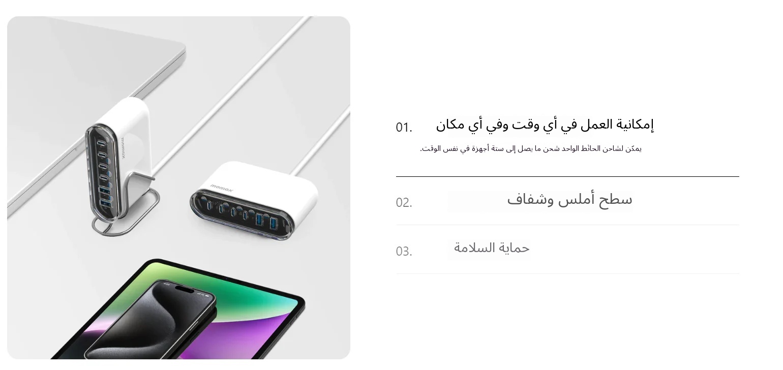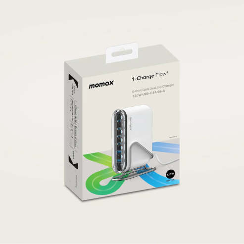 محطة شحن سطحية MOMAX 1-Charge Flow+ بقوة 120 واط وست منافذ إخراج بتقنية GaN