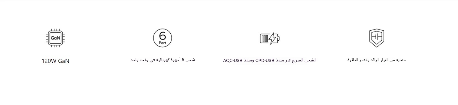 يوفر أربع منافذ USB-C ومنافذ USB-A اثنين، يمكن شحن ستة أجهزة في وقت واحد