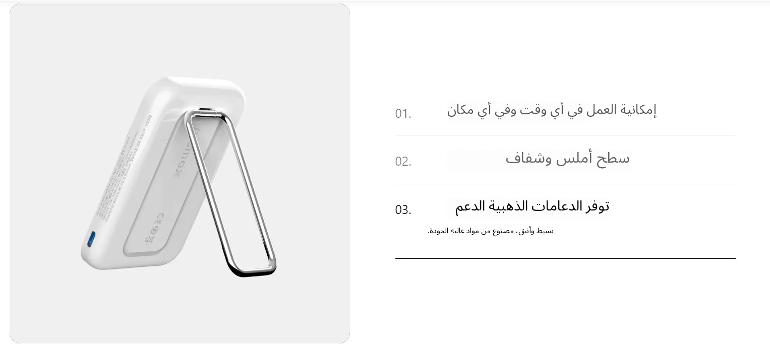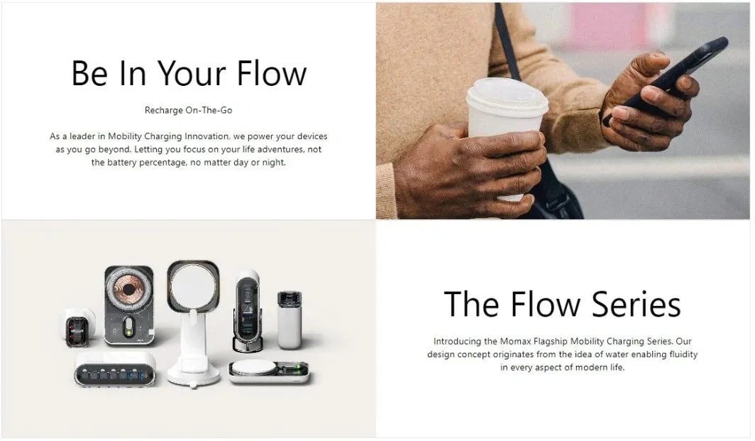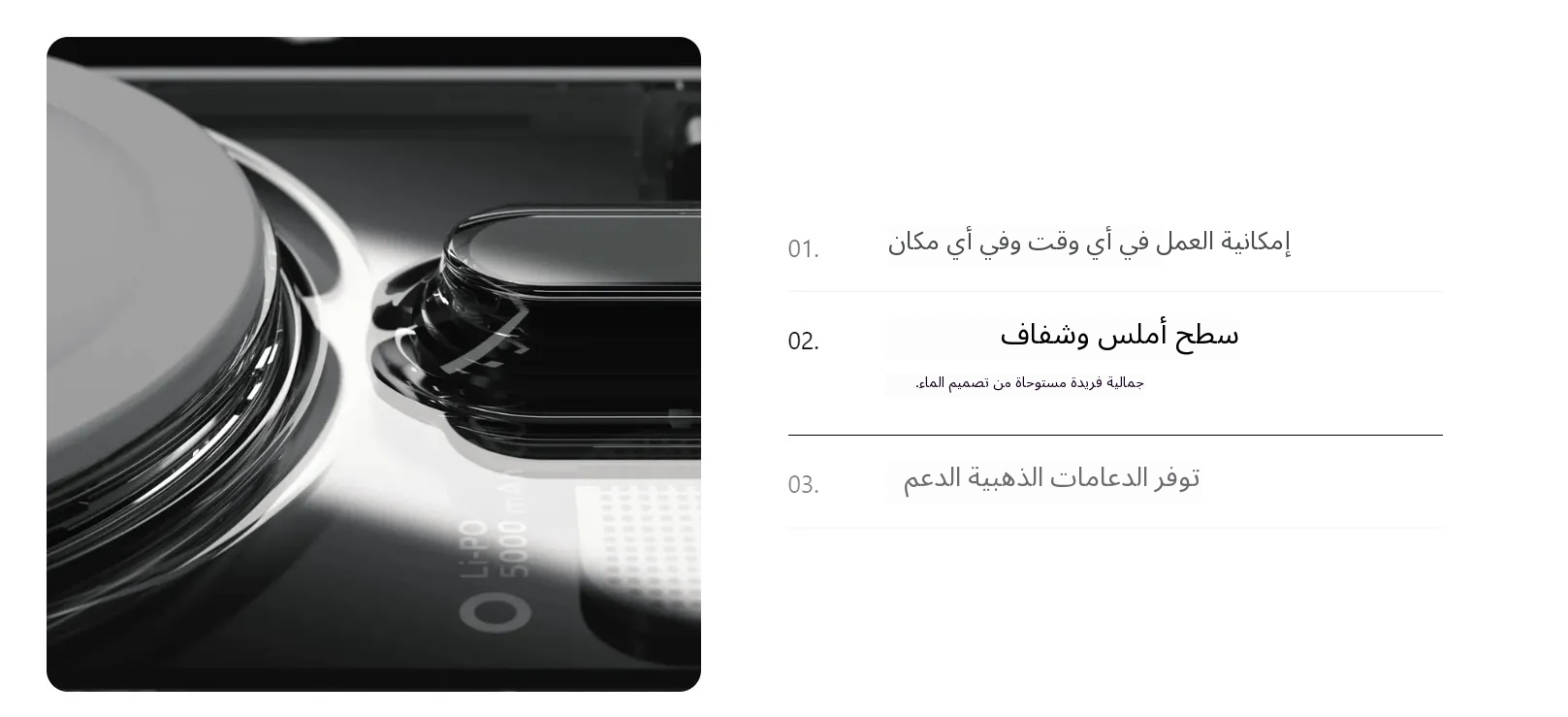 يتضمن فلسفة “اشحن كالماء؛ كن في تدفقك” في منتج الشحن، مما يؤسس جمالية تصميمية جديدة في أشكال متنوعة من تدفق الماء (Flow)