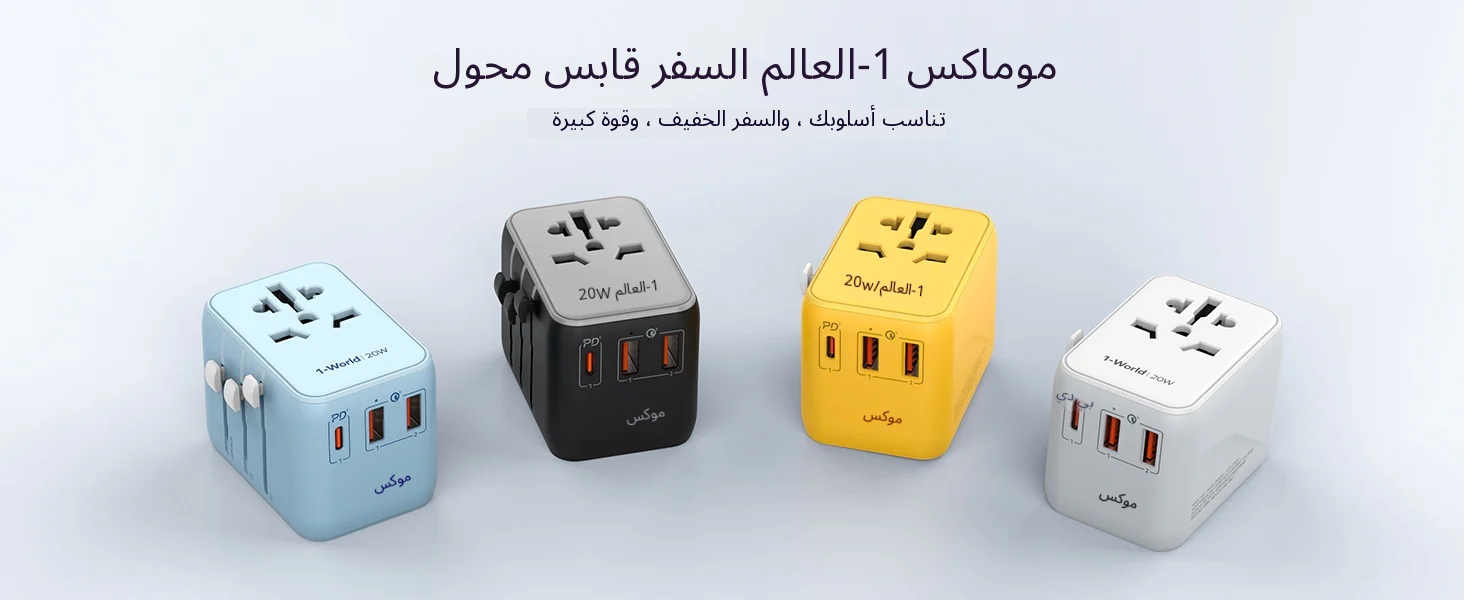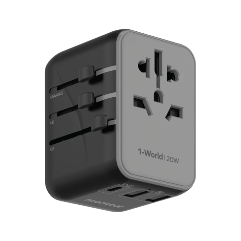 شاحن سفر MOMAX 1-World 20W بـ 3 منافذ + مقبس تيار متردد