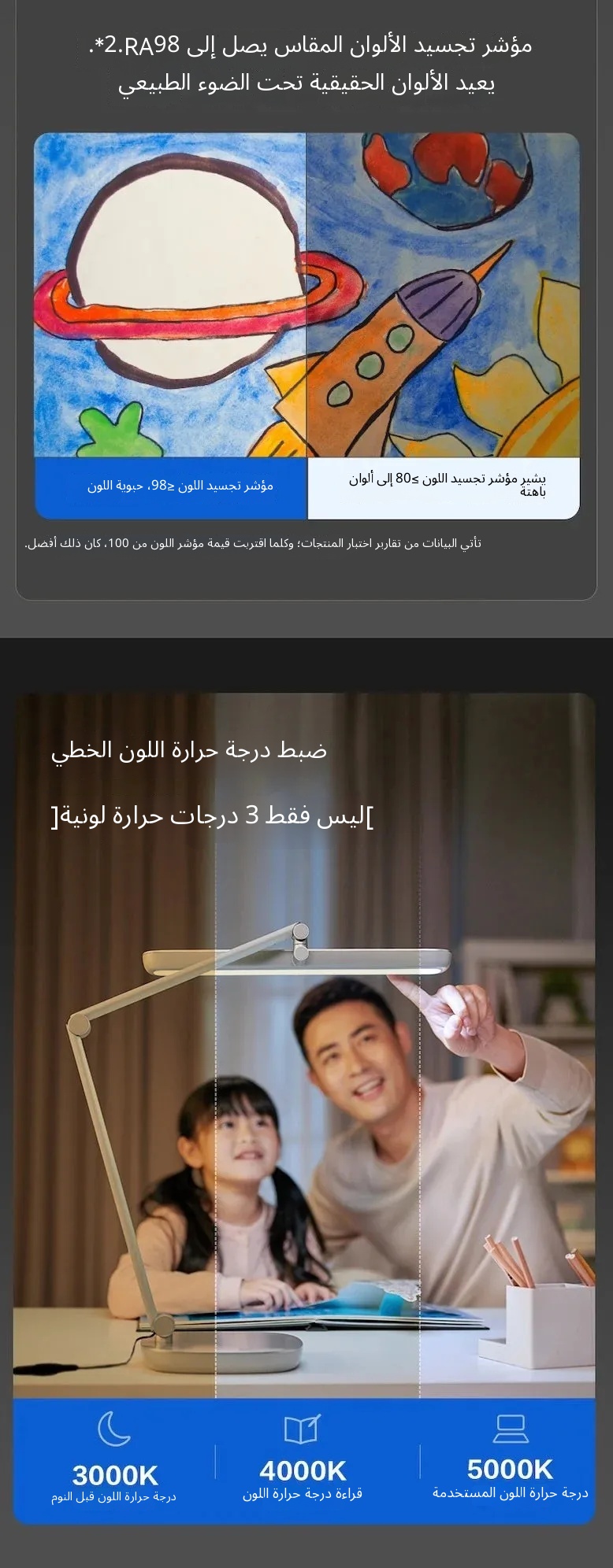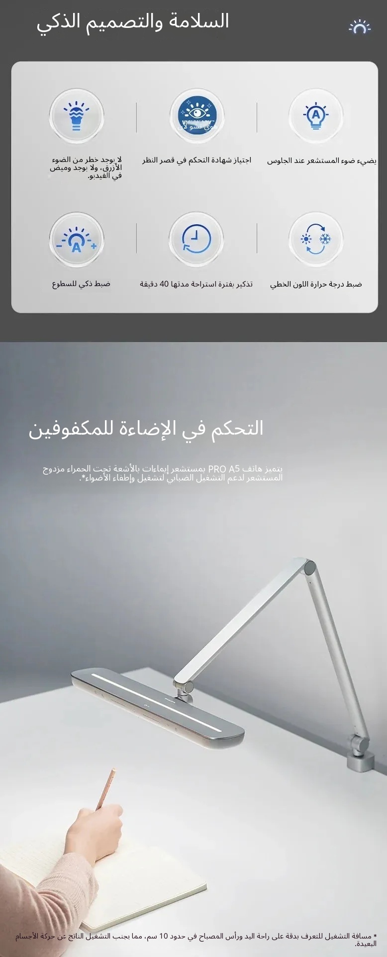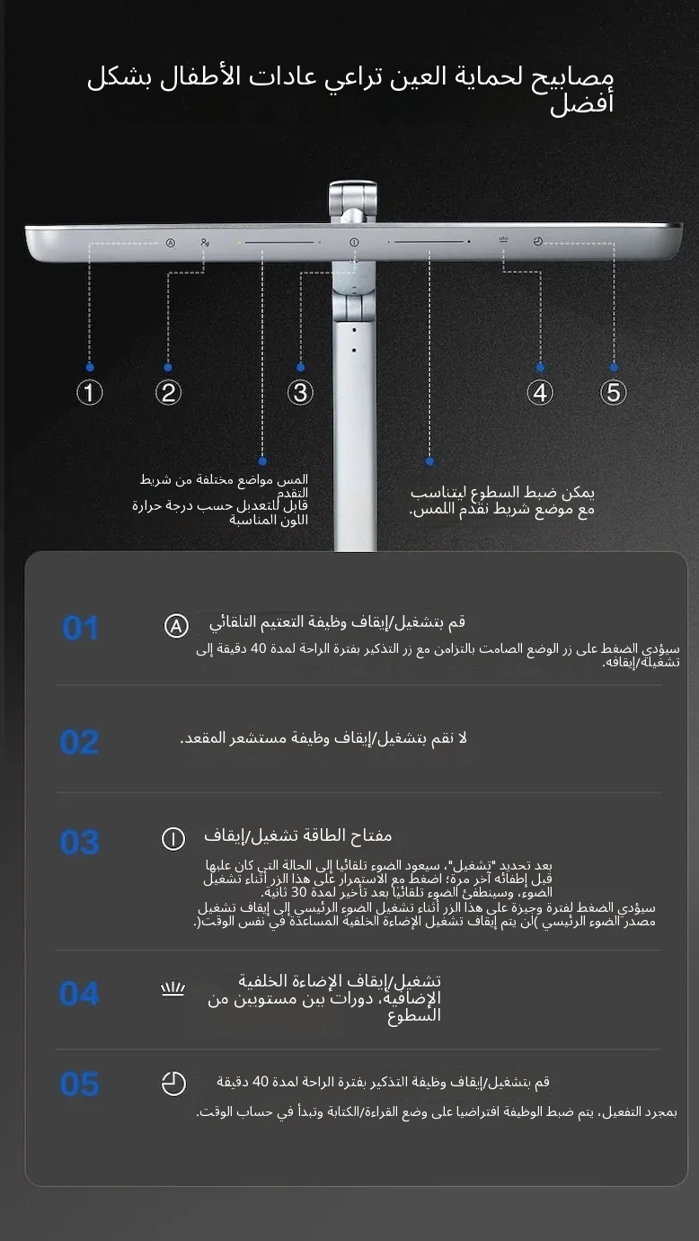 • الطيف الكامل على مستوى الألماس، يعيد الألوان الحقيقية لضوء الشمس • استشعار الإيماءات عن قرب بمسباحين بالأشعة تحت الحمراء • إضاءة فائقة العرض 130 سم التصميم والمظهر اللون أبيض + فضي آخر مناسب للمنزل، المكتب، الدراسة، المعيش…