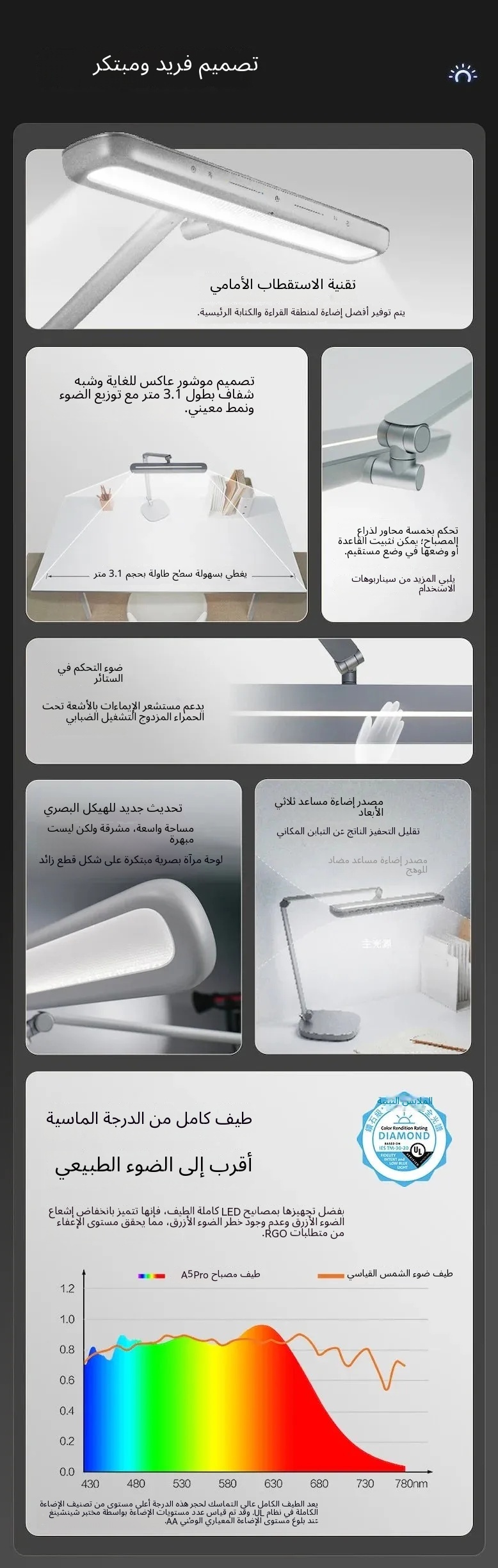 • مستوى الماس للطيف الكامل، يعيد الألوان الحقيقية لأشعة الشمس