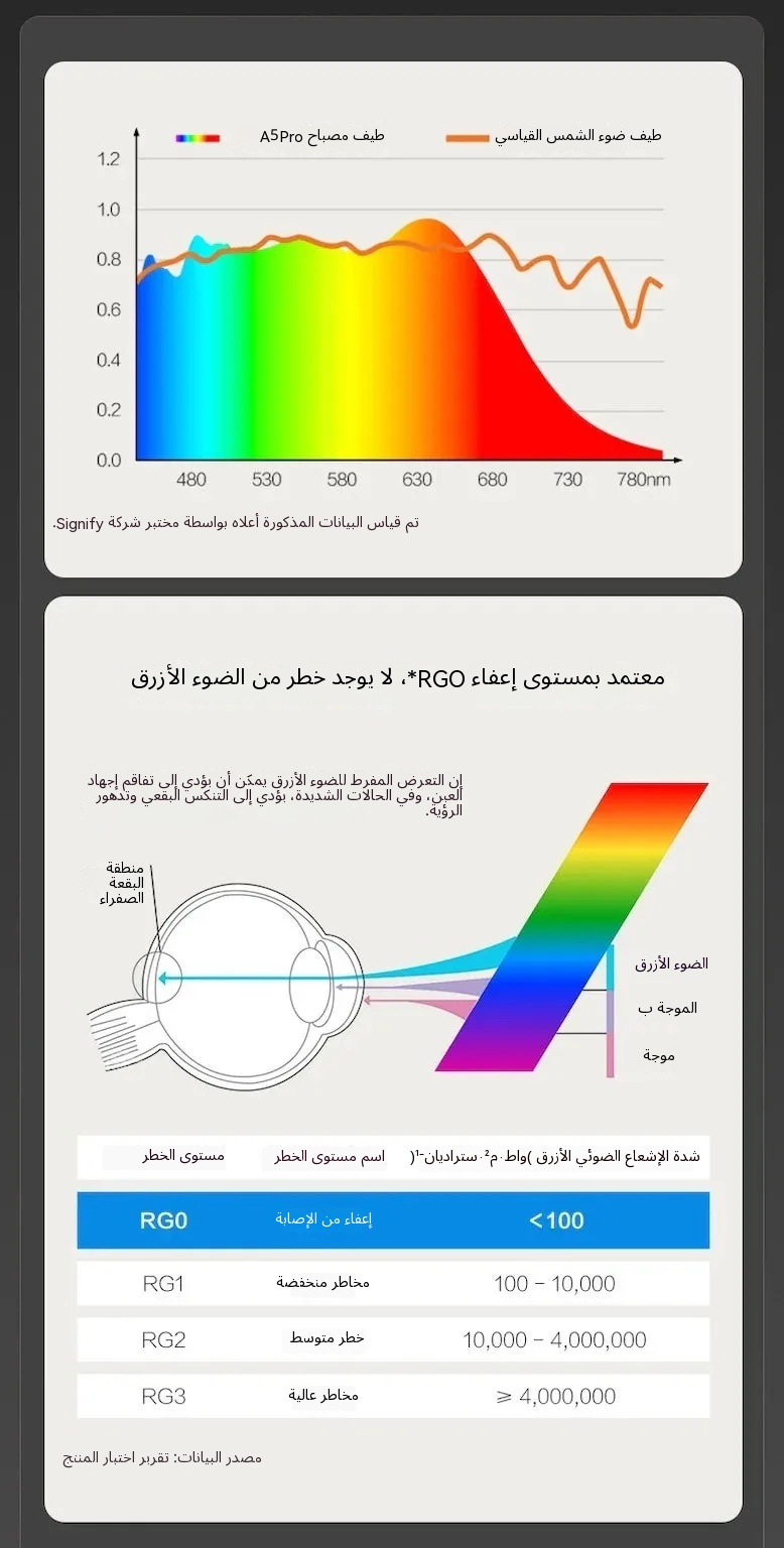 | الإضاءة | 870 لوكس (@40 سم) | |