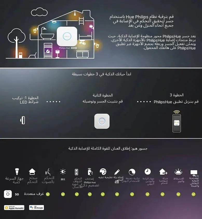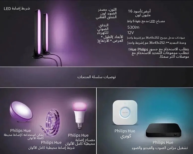 • يتطلب الاستخدام مع جهاز Hue Bridge