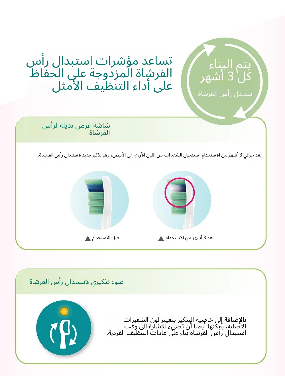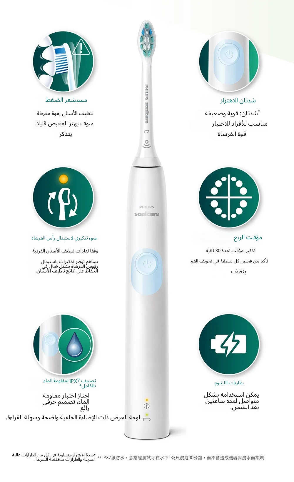 - التكنولوجيا الذكية والتأثير الفائق في التنظيف يعتني بلطف بالأسنان واللثة.