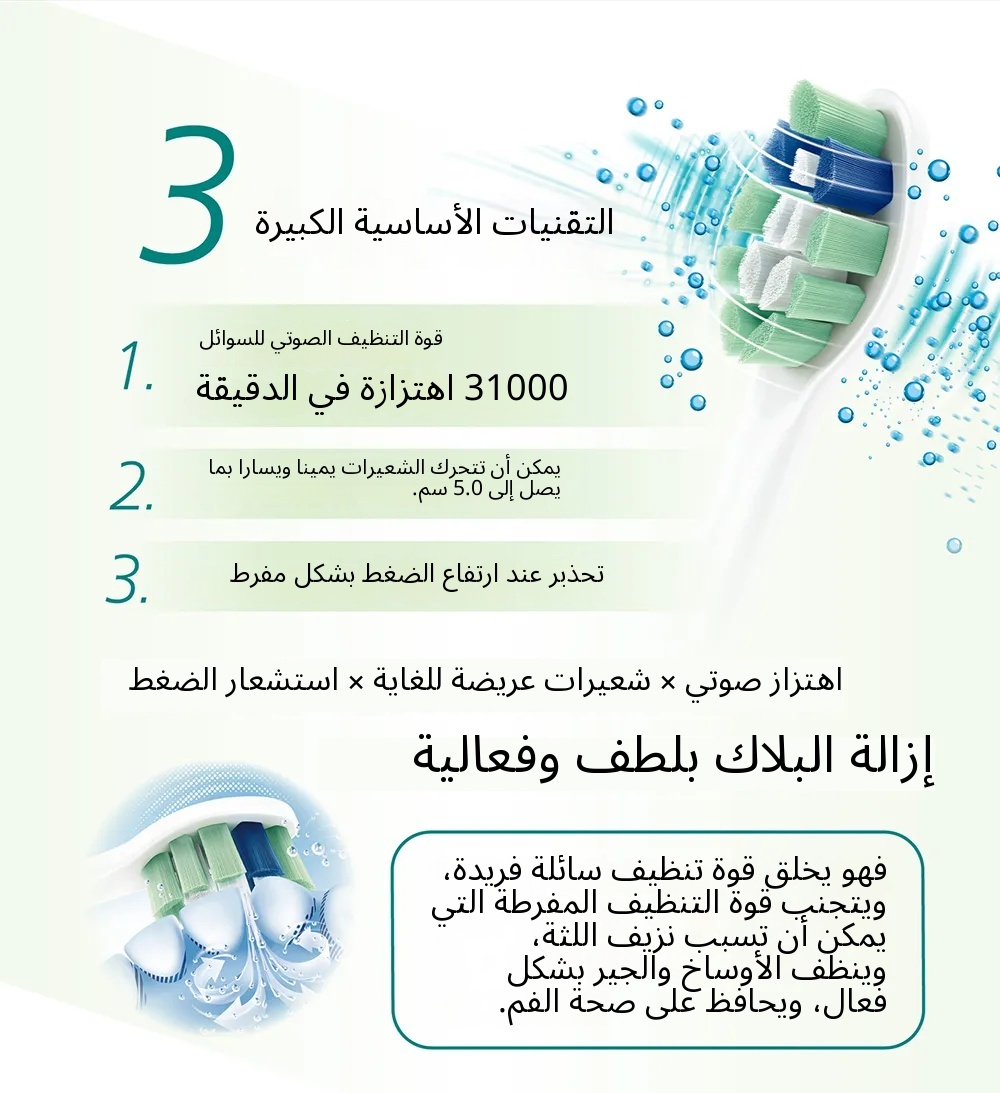 - 31,000 اهتزاز صوتي للحصول على نتيجة تنظيف أسنان أنظف