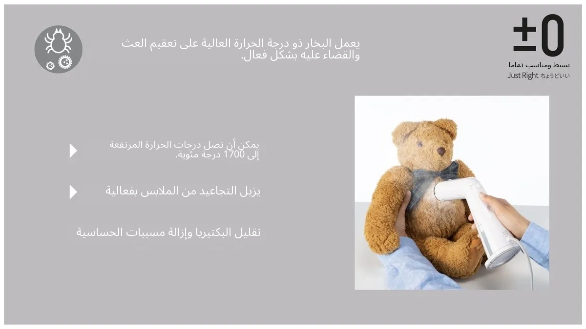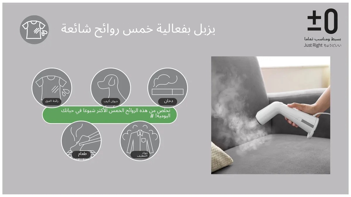 – يمكن للبخار عالي الحرارة إزالة خمسة روائح رئيسية في الحياة اليومية: العرق؛ روائح الحيوانات الأليفة؛ الدخان؛ بقايا الطعام؛ الرائحة العفنة