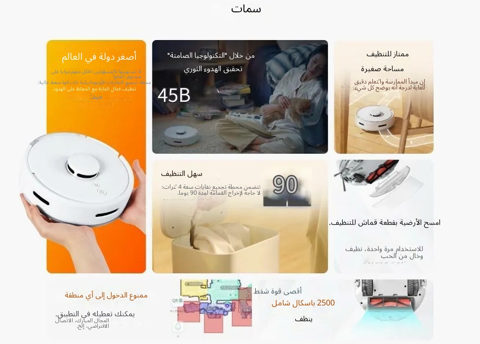 - بقوة شفط 3000 باسكال، يمكنها تنظيف جميع أنواع الأوساخ على الأرض، مع كونها هادئة للغاية في الوقت نفسه.