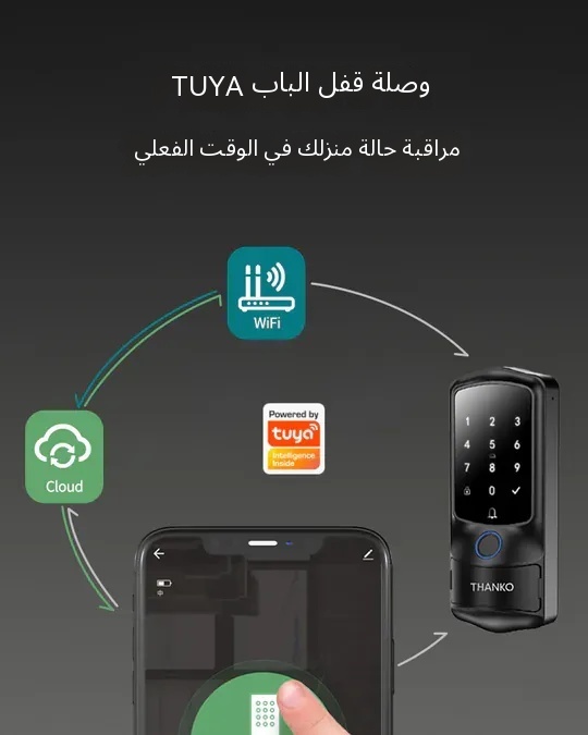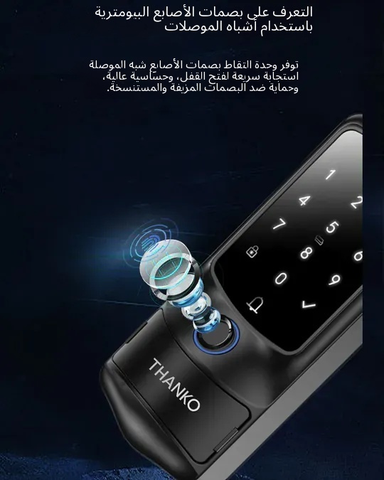 قفل بصمة الإصبع الذكي THANKO H1 (يشمل التركيب) 6️⃣ طرق فتح أساسية – 👍 التعرف على بصمة الإصبع – 🔢 كلمة المرور الرقمية – 💳 بطاقة مفتاح RFID – 🔑 المفتاح الاحتياطي – 📱 الفتح عن بُعد عبر الجوال (التطبيق) – 1️⃣ كلمة مرور لمرة واحدة محددة بوقت…