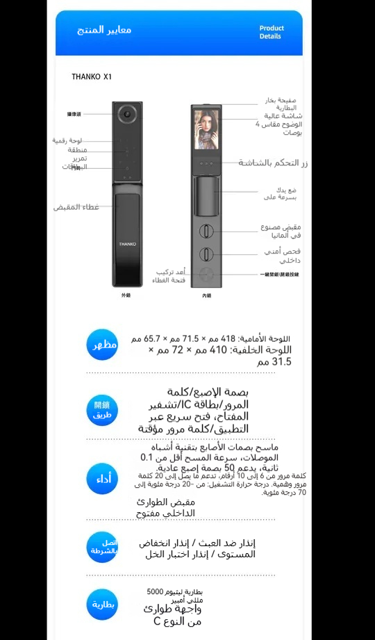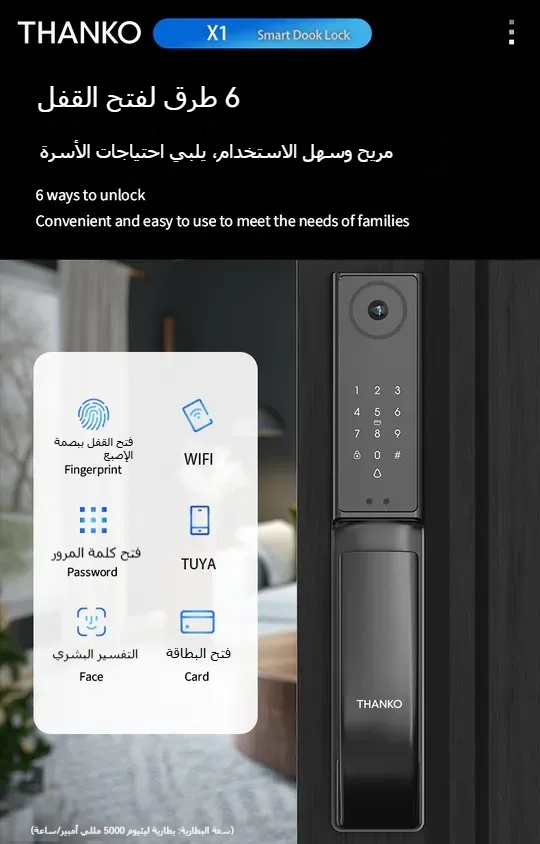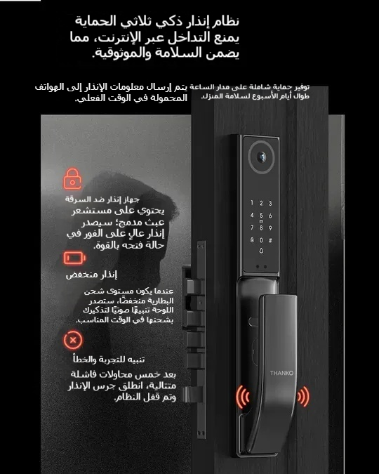 THANKO X1 قفل باب ذكي بكاميرا العين وتقنية التعرف على الوجه (يشمل التركيب)