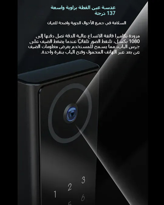 عدسة عين القطة بزاوية واسعة 137 درجة مع وظيفة الالتقاط التلقائي.