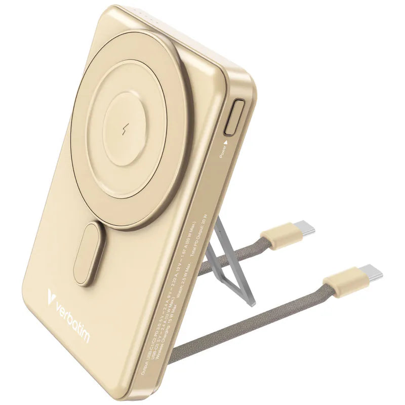 شاحن محمول لاسلكي مغناطيسي VERBATIM 5 في 1 Charge ‘n’ Go بسعة 10000 مللي أمبير/ساعة *معتمد 3C