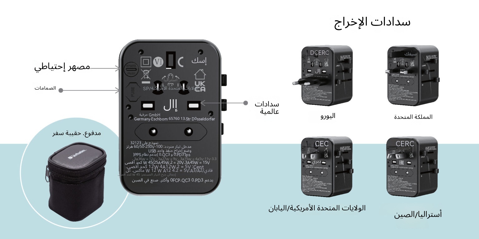- محول عالمي شامل (قابل للاستخدام في أكثر من 180 دولة)