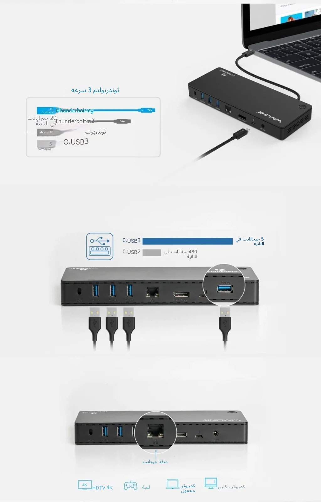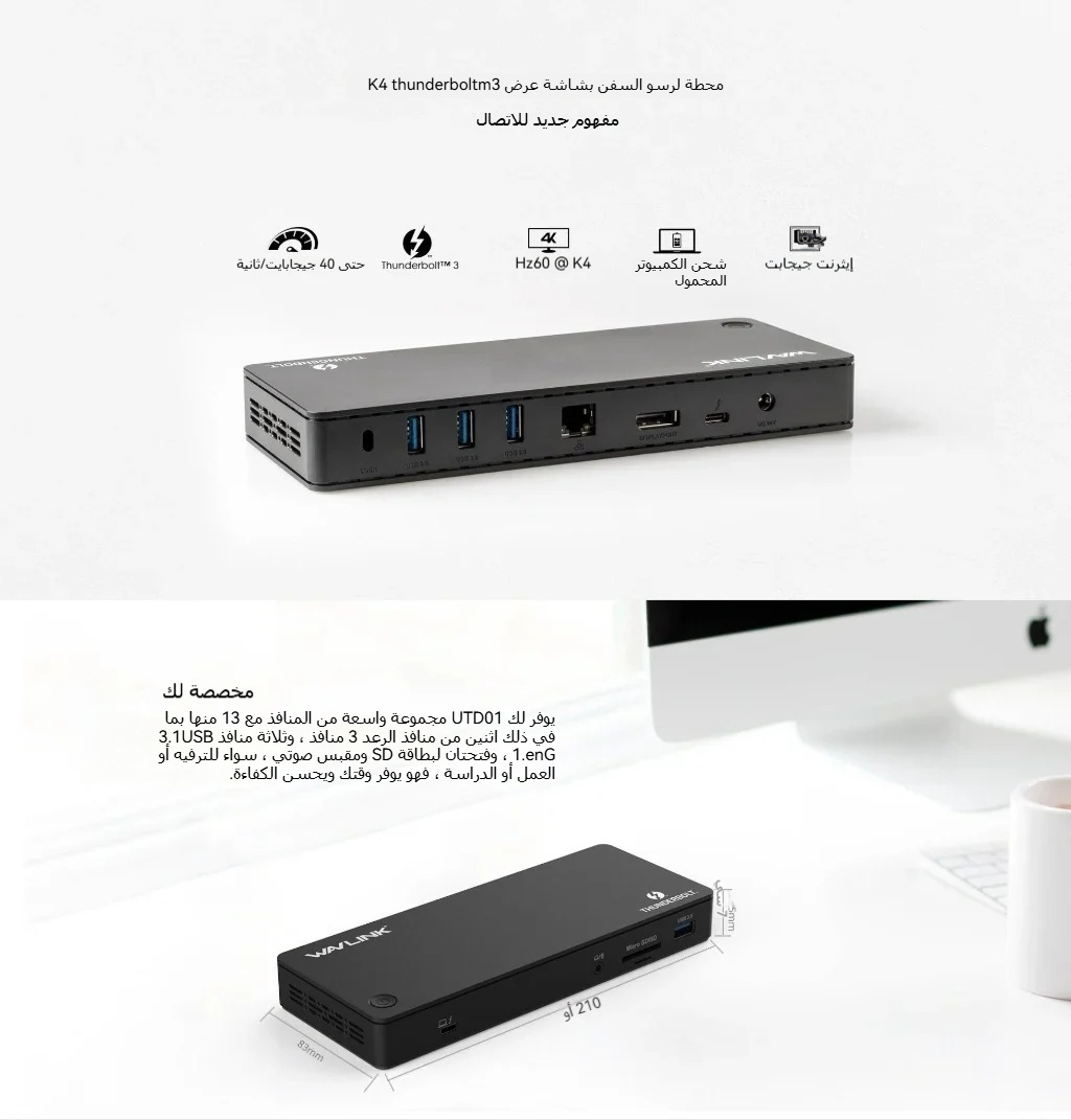 محطة إرساء متعددة الوظائف WavLink WL-UTD01 Thunderbolt 3 4K