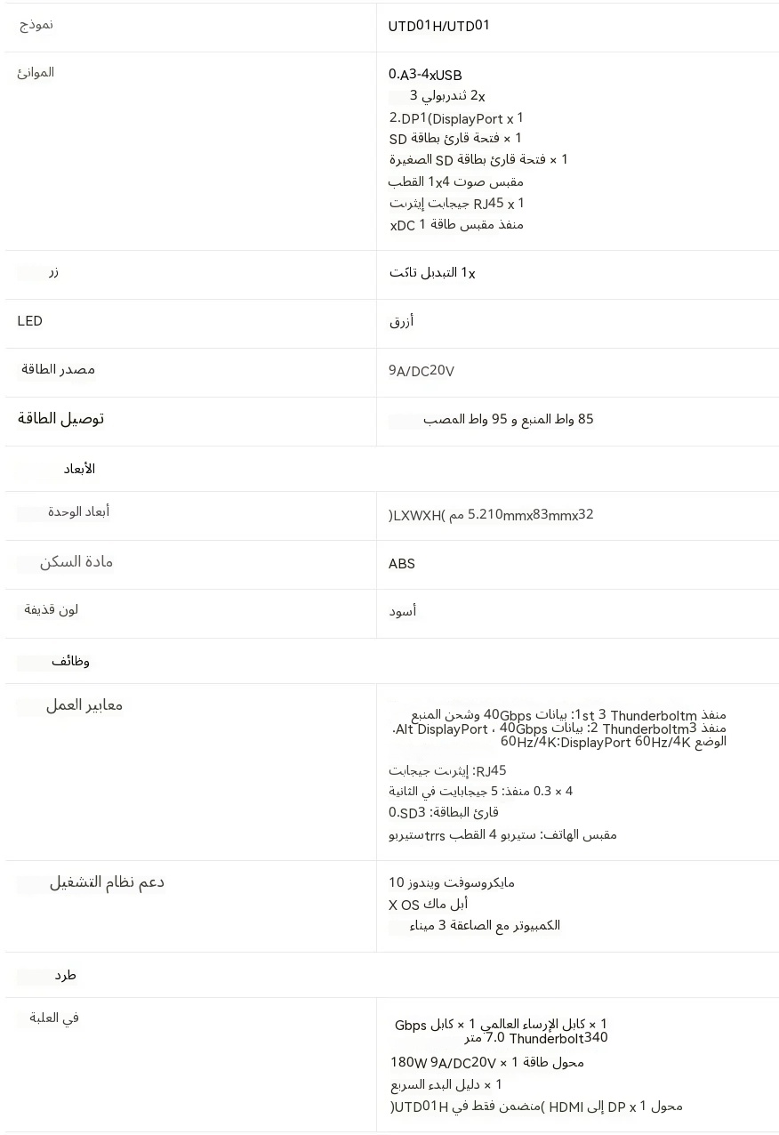 85 واط من توصيل الطاقة لشحن أنظمة الكمبيوتر Thunderbolt™ 3. يدعم DisplayPort 1.2 تقنيات HBR (2.7 جيجاهرتز) وHBR2 (5.4 جيجاهرتز) وHBR3 (8.1 جيجاهرتز). تصل دقة DisplayPort القصوى إلى 4K@60Hz. يدعم منفذ USB 3.0 Type-A الأمامي للاتجاه النازل سرعة 5 جيجابت…