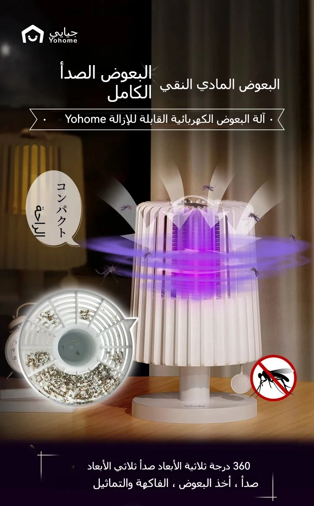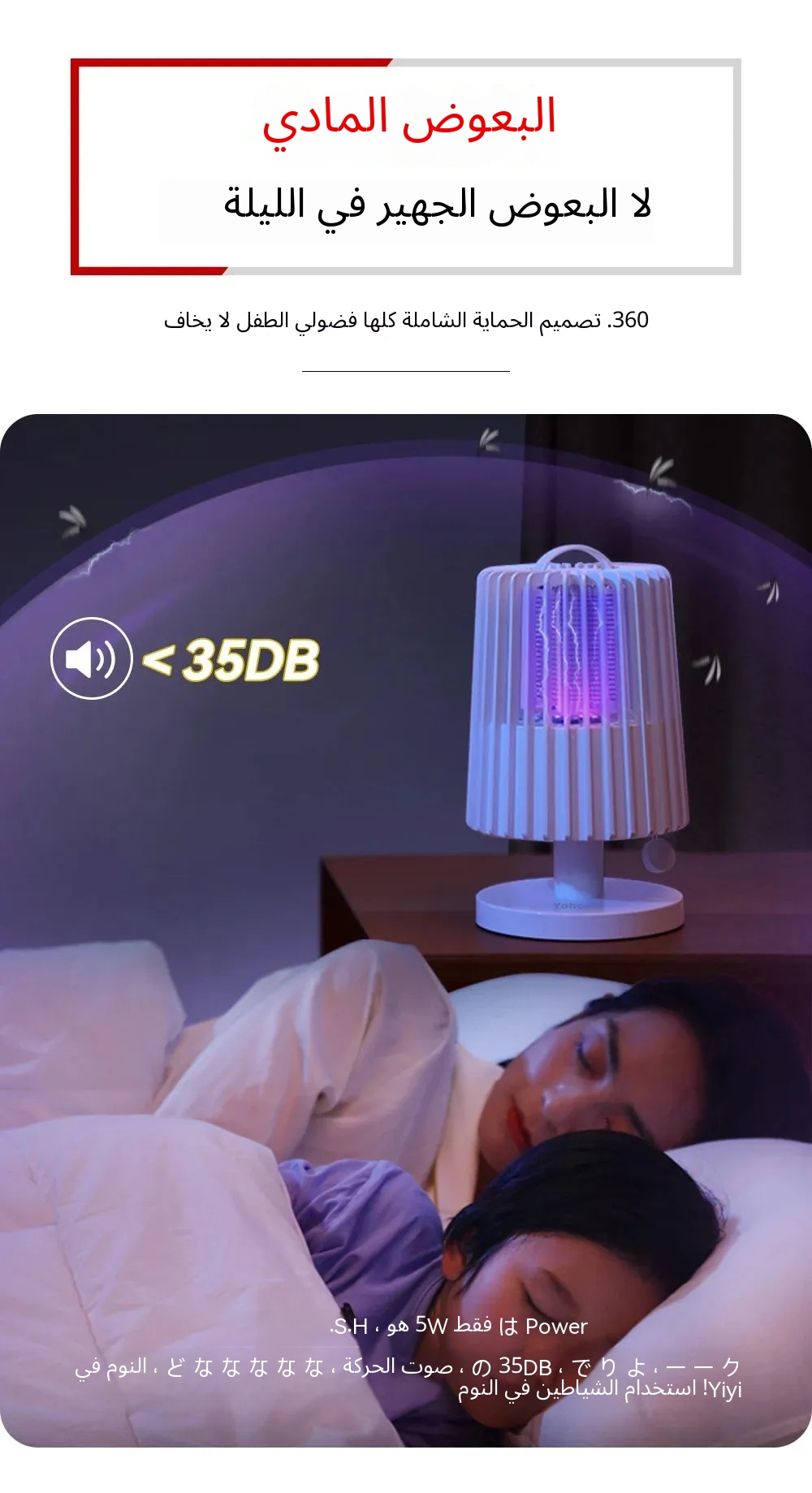 - يعمل بمستوى ضوضاء منخفض 35 ديسيبل، دون أي إزعاج من البعوض.