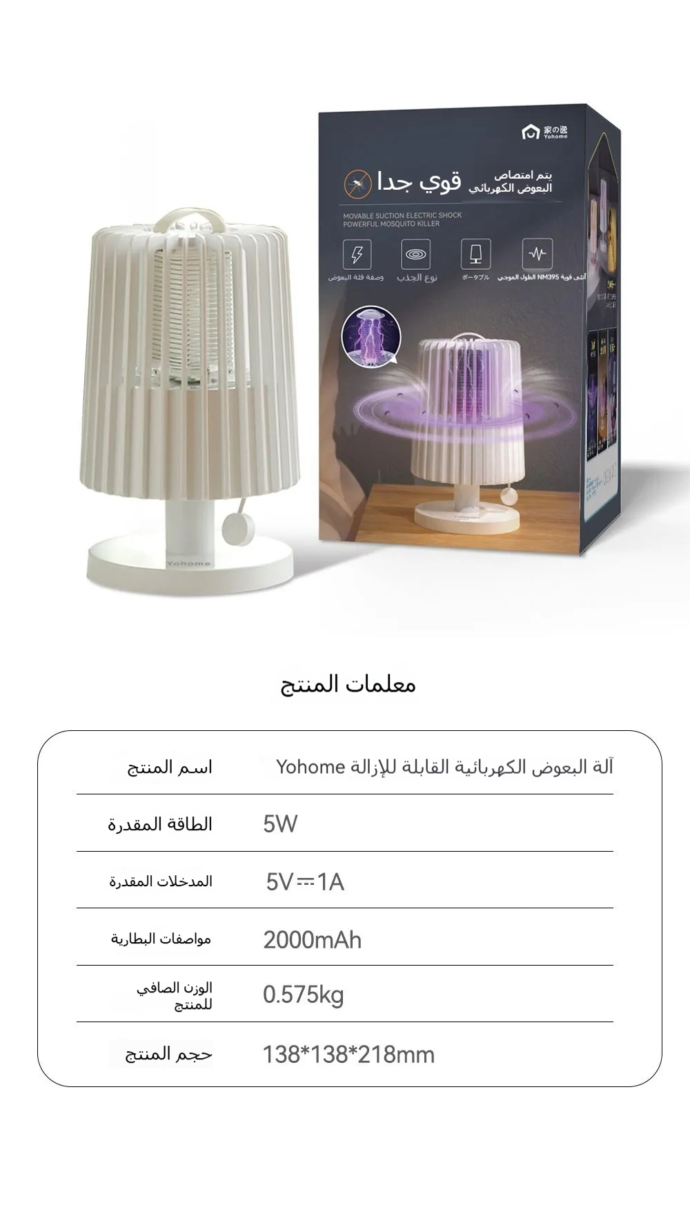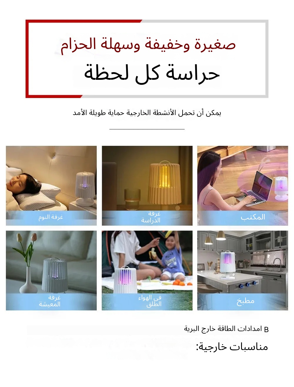 - وقت الاستخدام: 3.5 ساعات (وضع قتل البعوض) – 15 ساعة (وضع الضوء الدافئ)