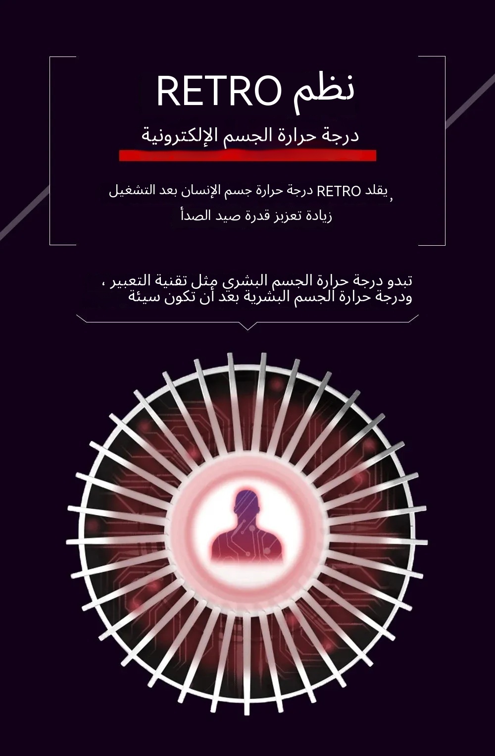 - يحاكي نظام RETRO درجة حرارة الجسم البشري؛ عند التشغيل، ينبعث الحرارة بطريقة مشابهة لدرجة حرارة الجسم البشري، مما يعزز قدرات الاصطياد بشكل أكبر ويوفر أماناً مدروساً.