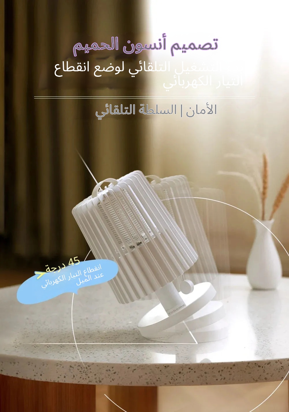 - عند ميلانه بزاوية 45 درجة، يُفعّل تلقائياً وضع إطفاء الطاقة لأمان أفضل. كما يوفر كبت البعوض بتردد منخفض حمايتك طوال الليل.