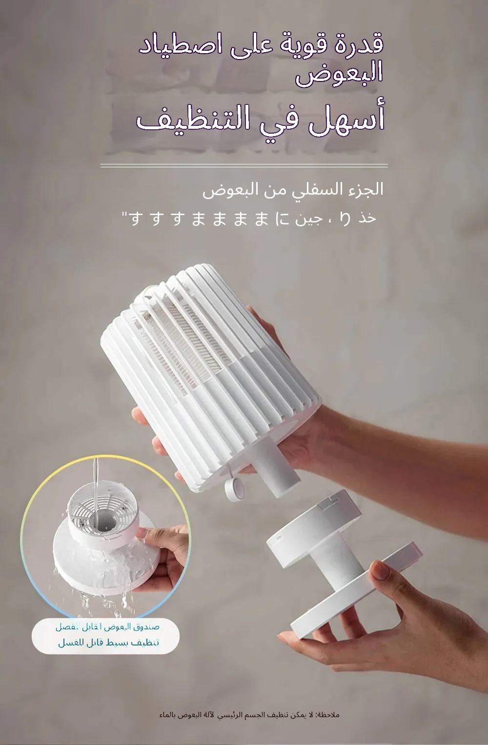 - التحكم الفيزيائي الخالص بالبعوض يحمي صحتك. الجهاز قابل للفك والغسل، ويحتوي صندوق تخزين البعوض السفلي على تصميم منفصل؛ ما عليك سوى فتح الغطاء لإزالة البعوض.